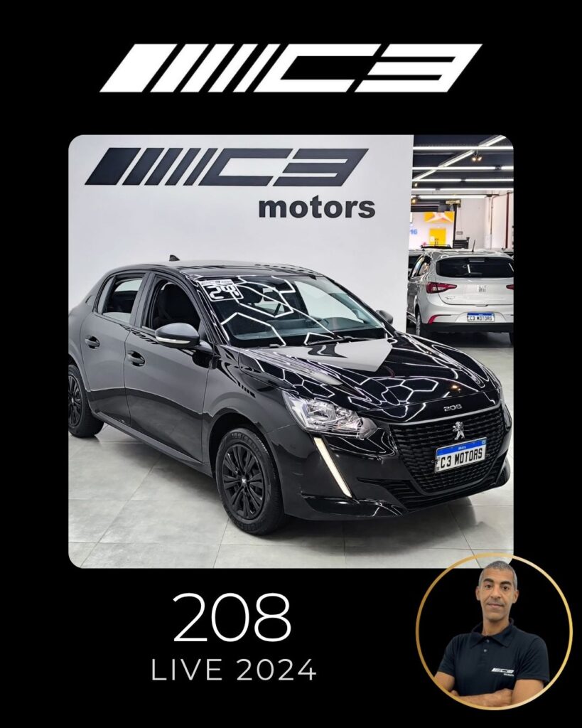 Peugeot 208 Live 1.0 2024 se diferencia principalmente por ser o modelo de entrada da linha, focado em um custo-benefício equilibrado, mas ainda oferece o moderno design externo, o teto solar panorâmico e o i-Cockpit 3D de todas as versões, além de um bom pacote de segurança com controles de tração e estabilidade, e seis airbags