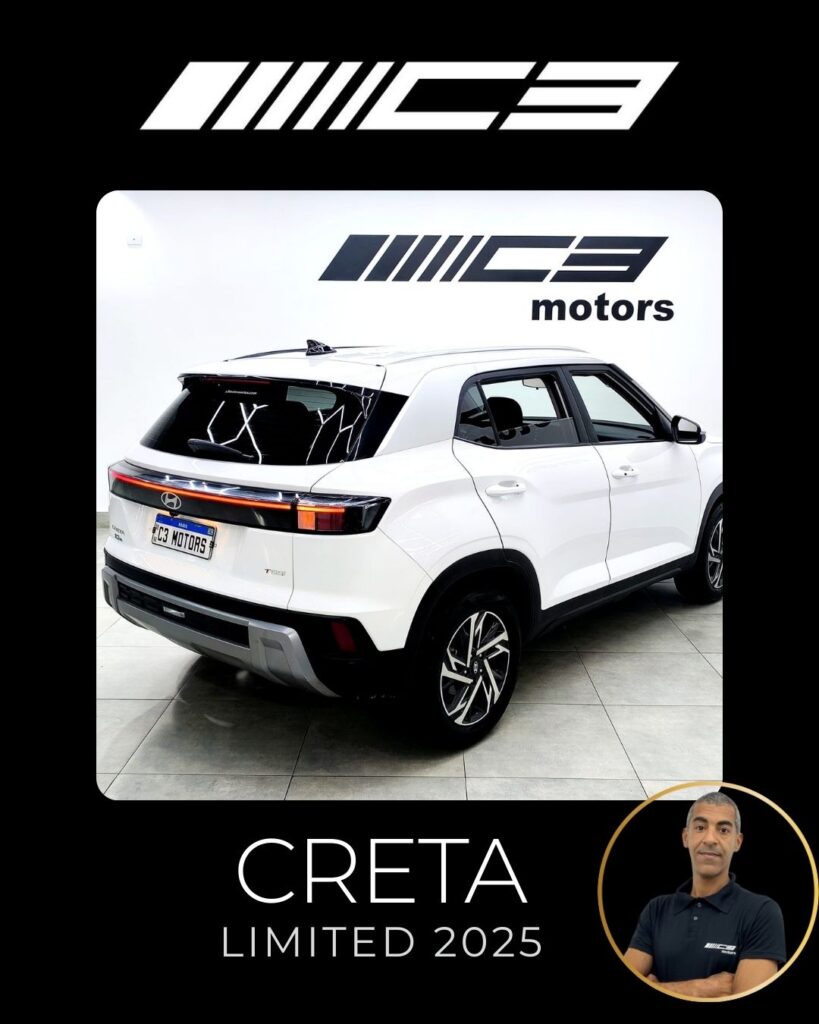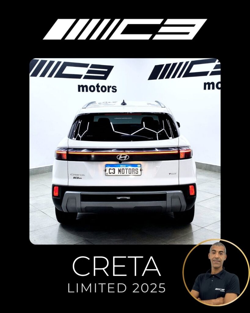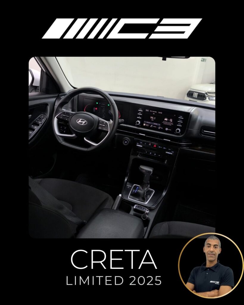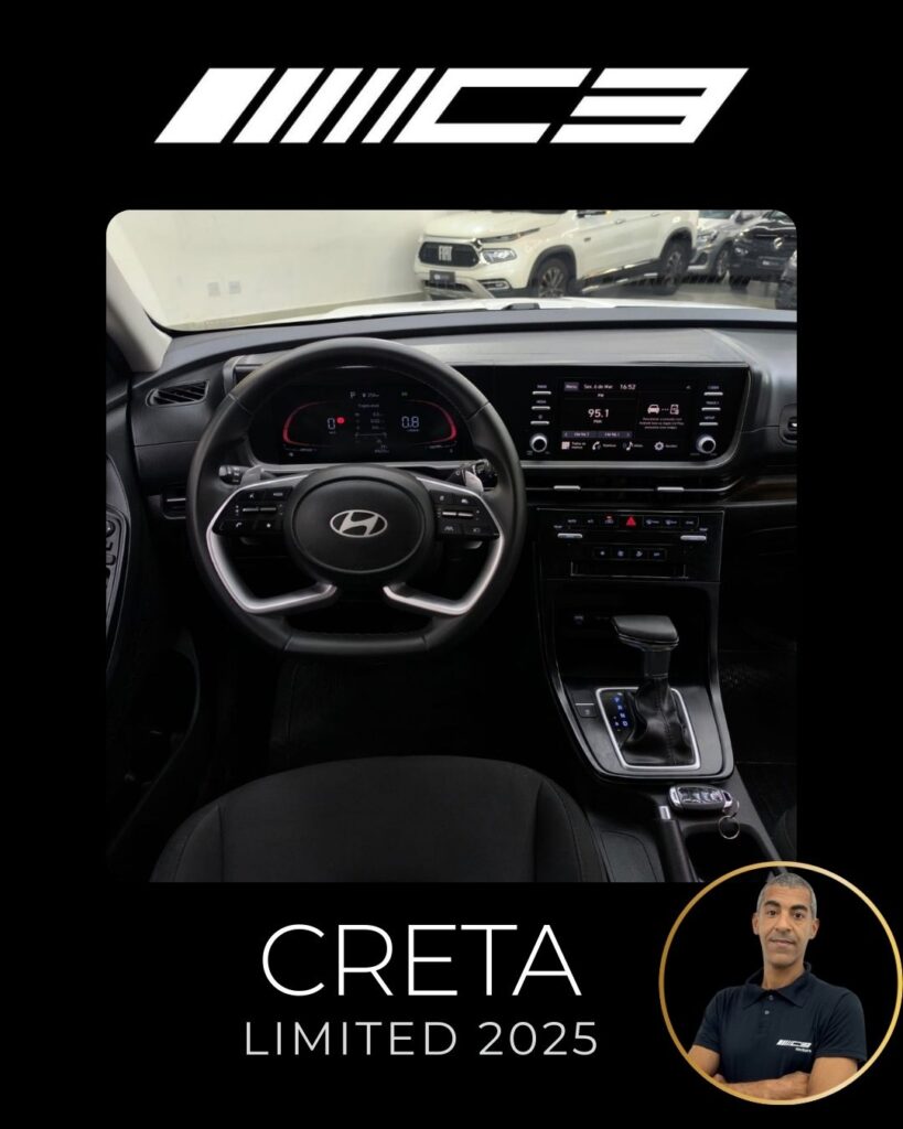 O Hyundai Creta Limited 2025 destaca-se como a versão intermediária com o melhor custo-benefício, trazendo motor 1.0 Turbo, painel digital de 10,25", ar-condicionado digital de duas zonas, carregador por indução e o pacote de segurança Hyundai SmartSense (frenagem autônoma, assistente de faixa