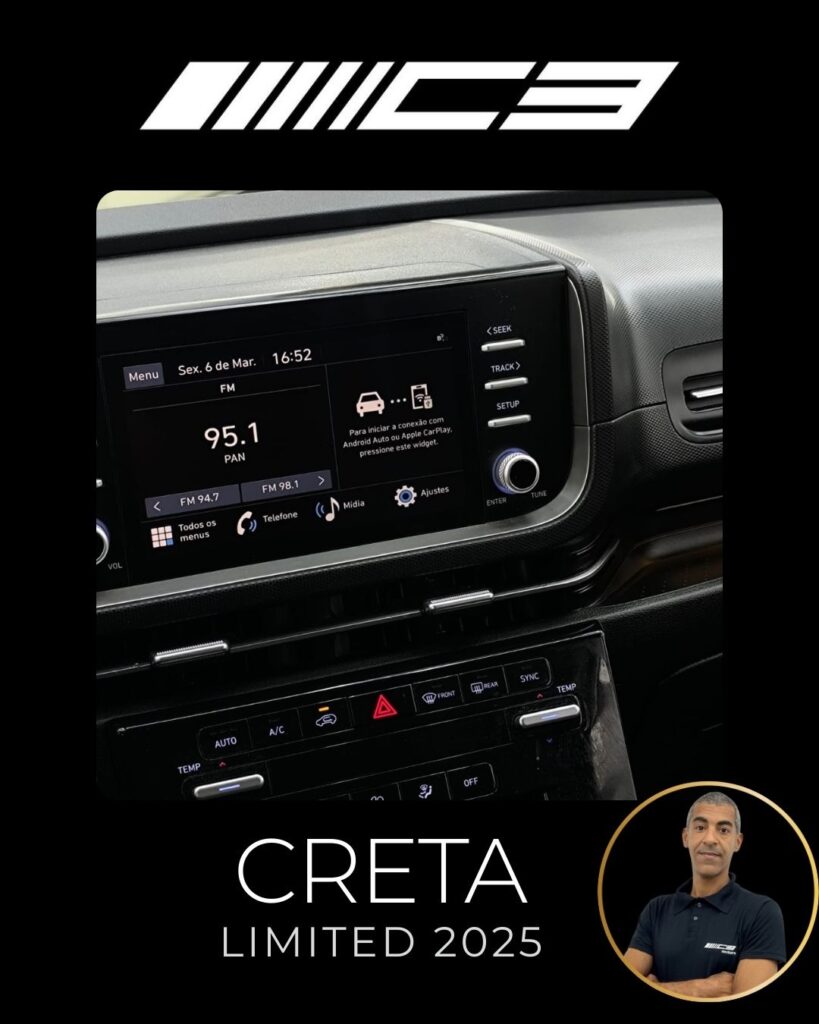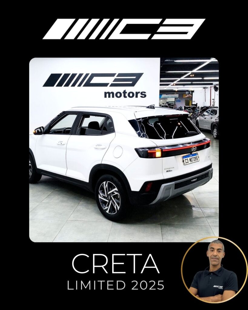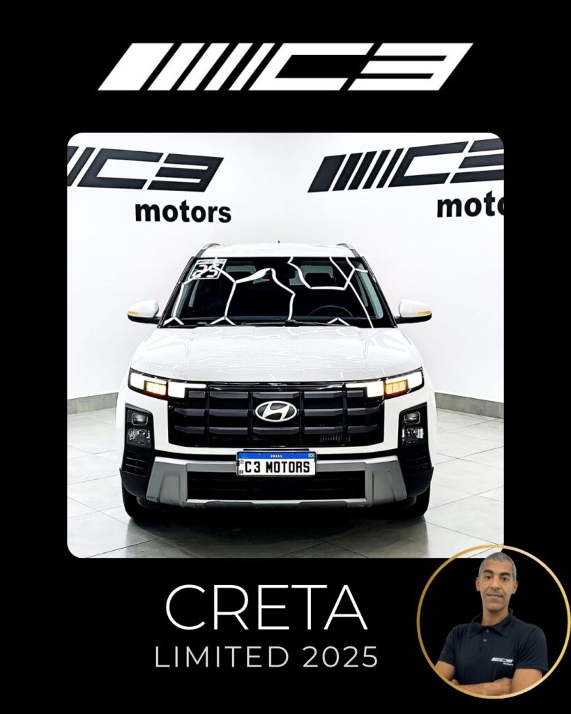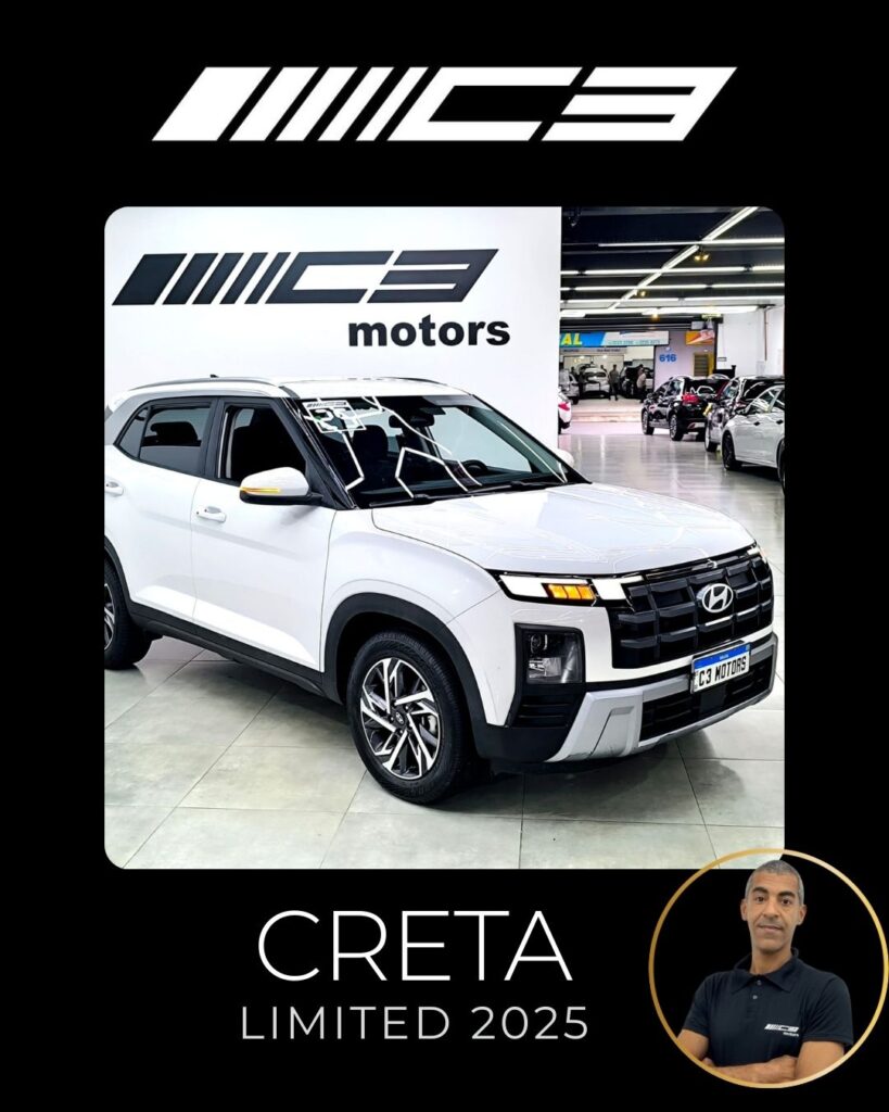 O Hyundai Creta Limited 2025 destaca-se como a versão intermediária com o melhor custo-benefício, trazendo motor 1.0 Turbo, painel digital de 10,25", ar-condicionado digital de duas zonas, carregador por indução e o pacote de segurança Hyundai SmartSense (frenagem autônoma, assistente de faixa