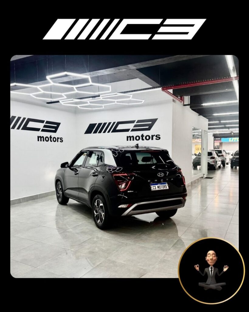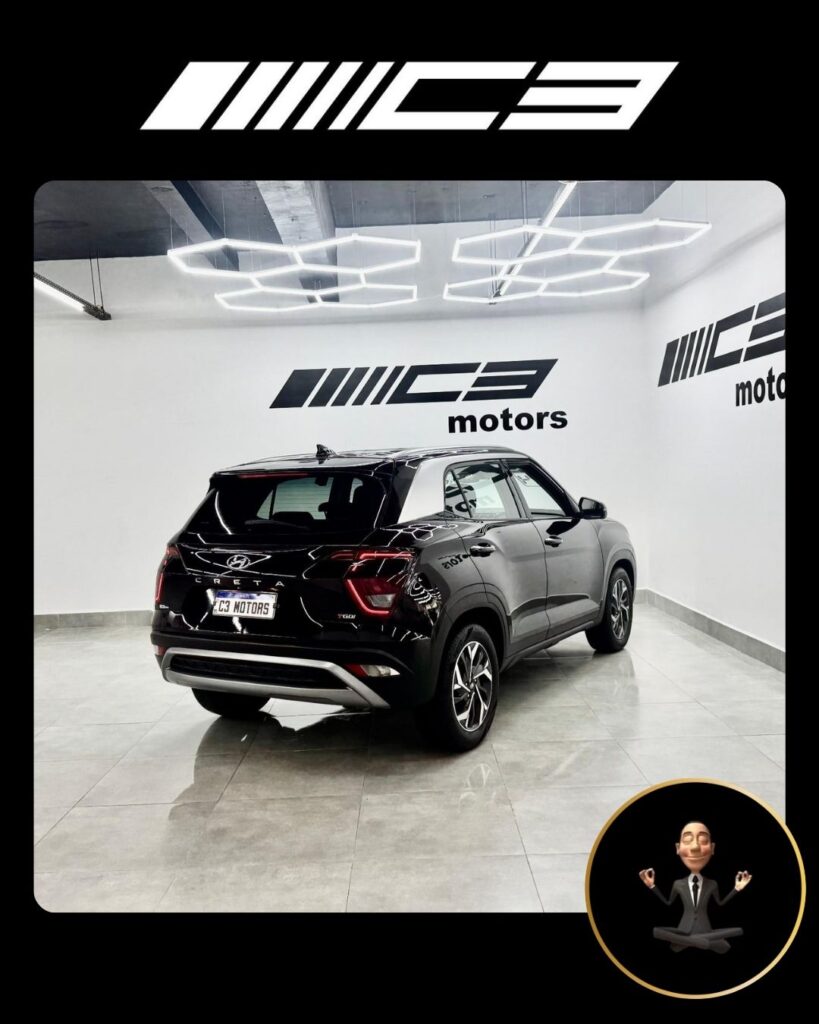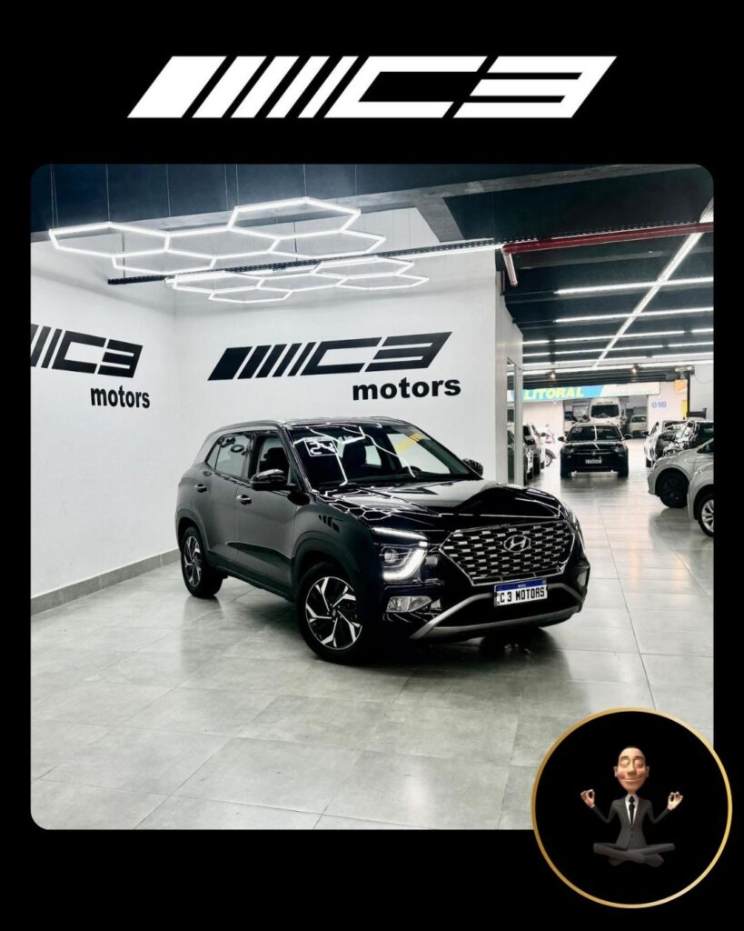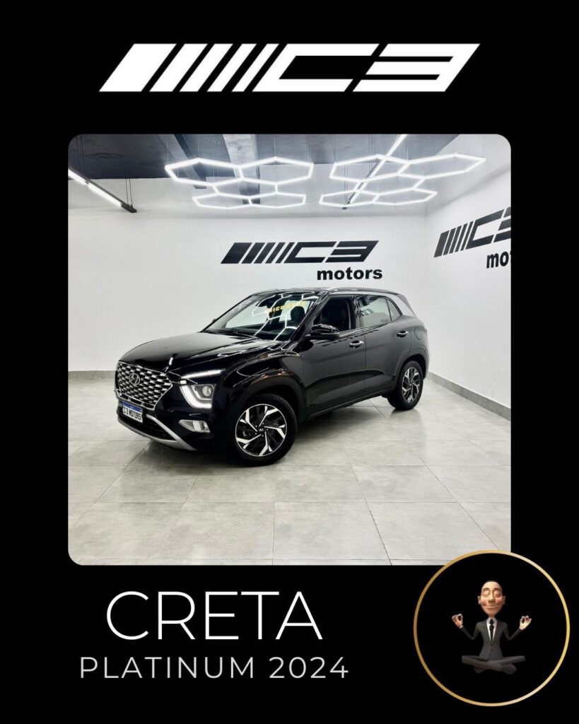O Hyundai Creta Platinum 2024 se destaca pelo acabamento interno premium, central multimídia integrada ao painel, ar-condicionado automático digital de duas zonas e volante com comandos interativos. Além disso, oferece pacote de segurança avançado com alerta de fadiga, assistente de permanência em faixa e frenagem autônoma de emergência
