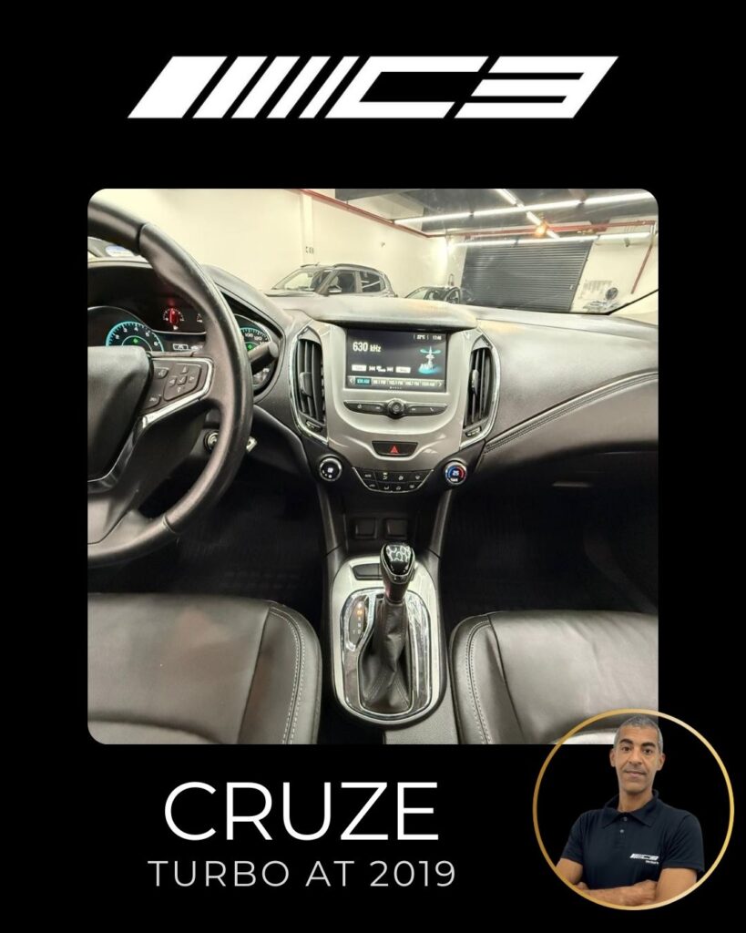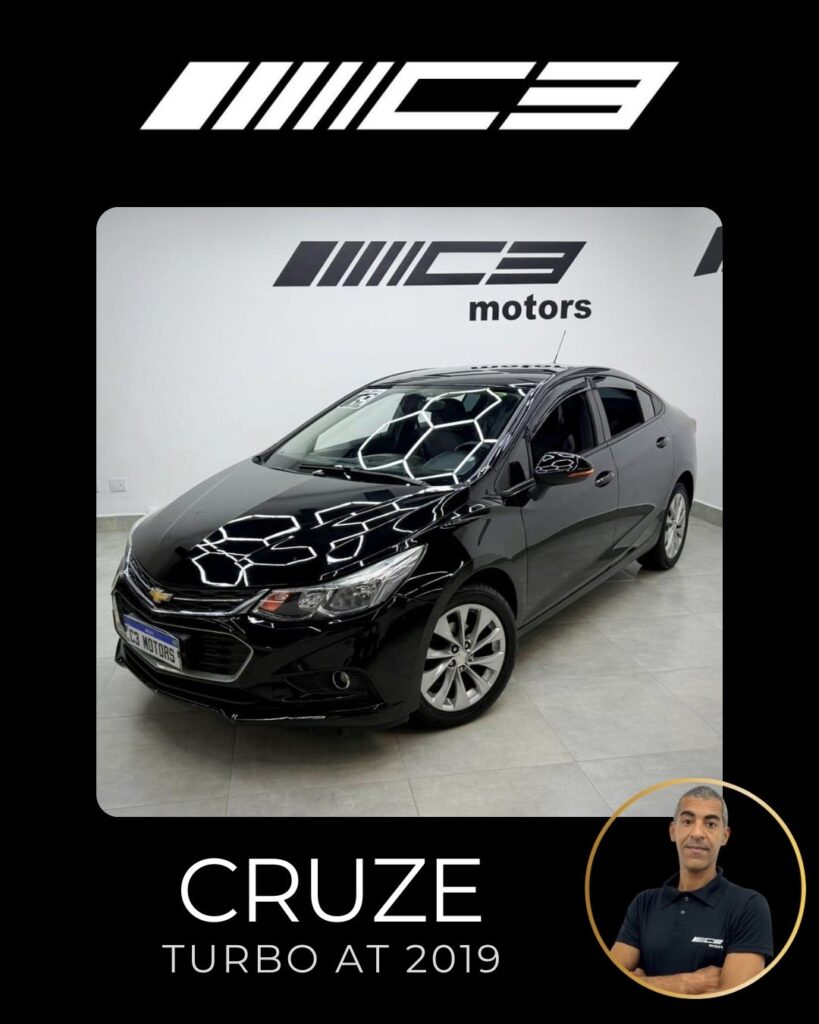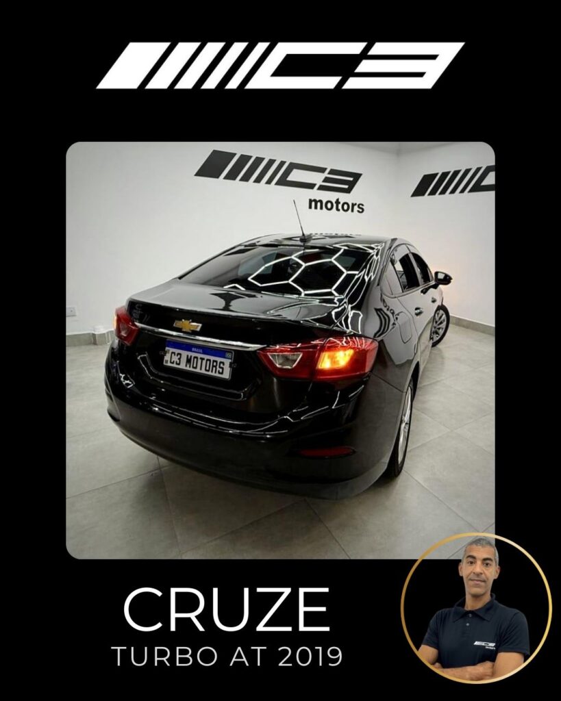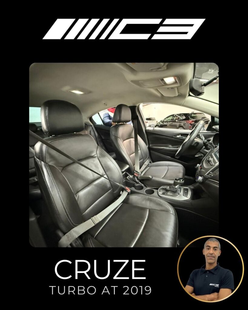 Os principais diferenciais do Chevrolet Cruze Sedan 1.4 AT 2019 incluem o motor 1.4 turbo Ecotec com corrente de comando (que reduz custos de manutenção), um desempenho ágil para sua categoria (acelerando de 0 a 100 km/h em cerca de 9 segundos), bom nível de tecnologia (com sistema MyLink, Apple CarPlay e Android Auto), e diversas opções de segurança e conforto dependendo da versão, como airbags, sensores de estacionamento, câmera de ré e controles de tração e estabilidade