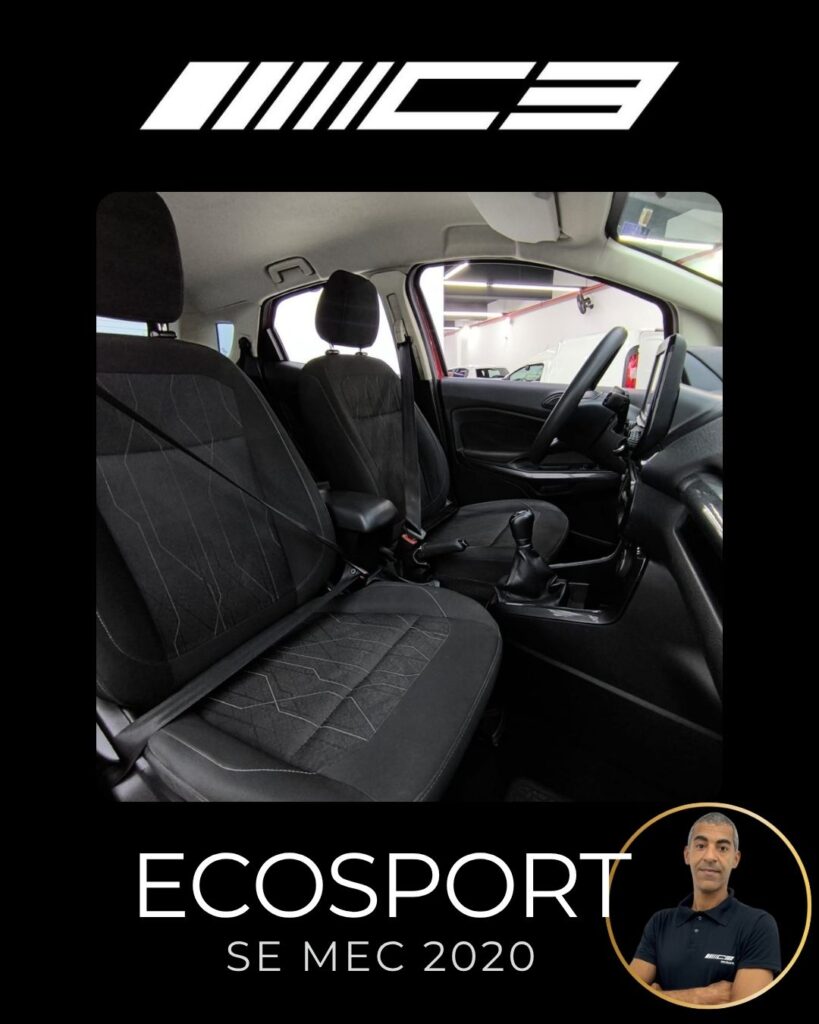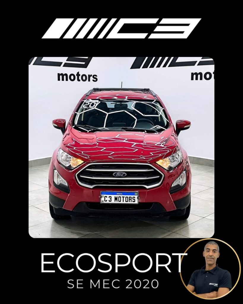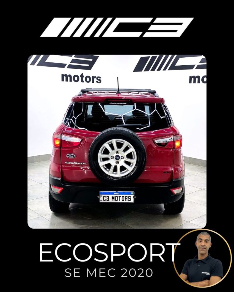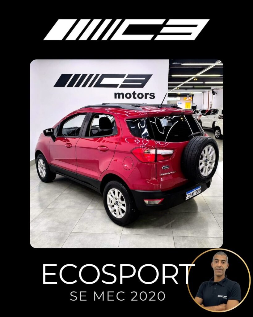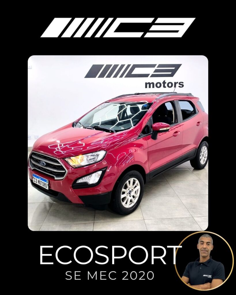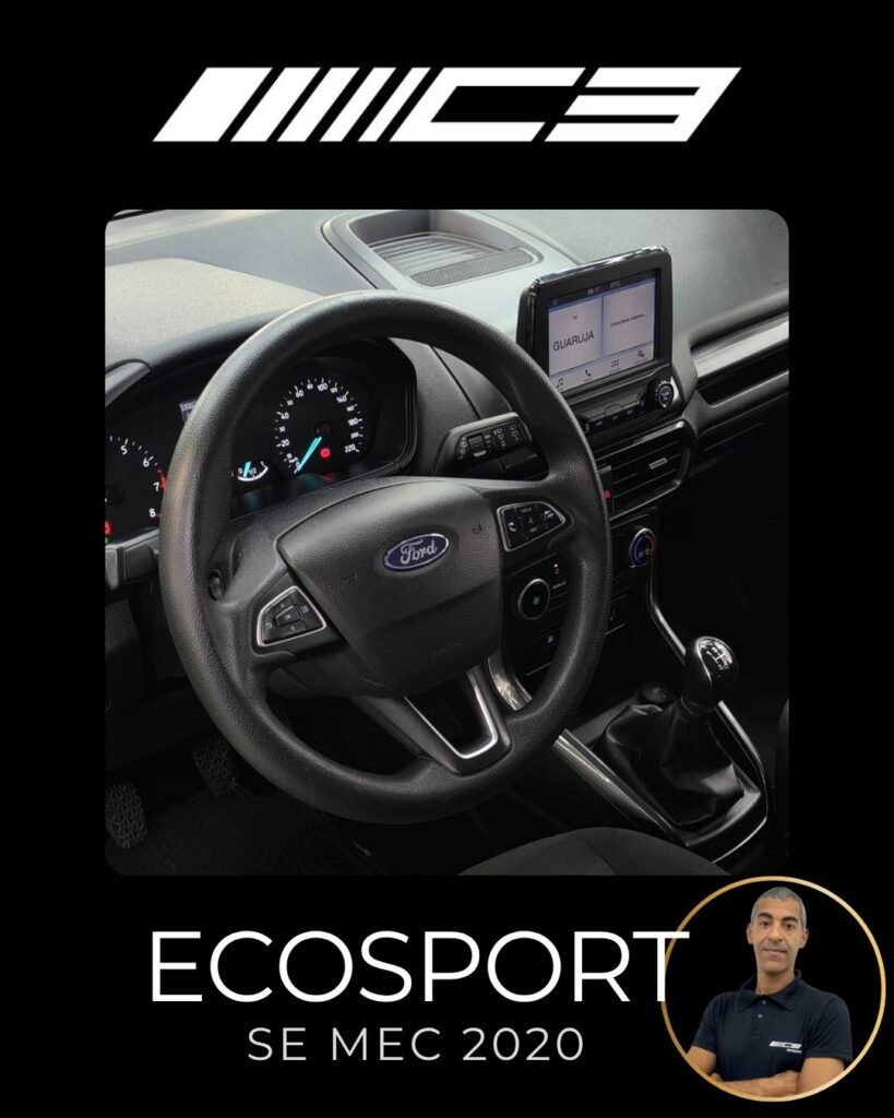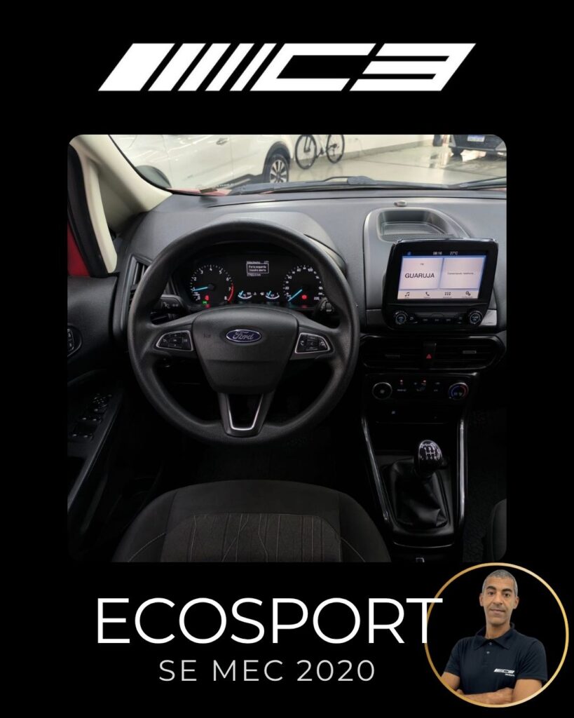 A Ford Ecosport SE 1.5 Mecânica 2020 destaca-se pelo conjunto mecânico moderno (motor 1.5 Dragon de 137 cv), alta conectividade com a central SYNC 2.5 (Android Auto/Apple CarPlay) e um pacote de segurança robusto de série, que inclui controle de estabilidade e tração (AdvanceTrac) e 7 airbags, oferecendo ótimo custo-benefício