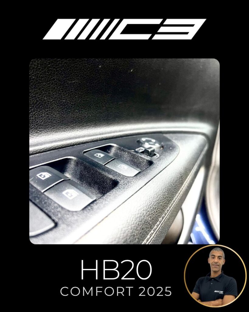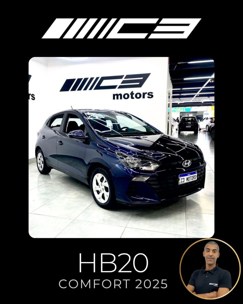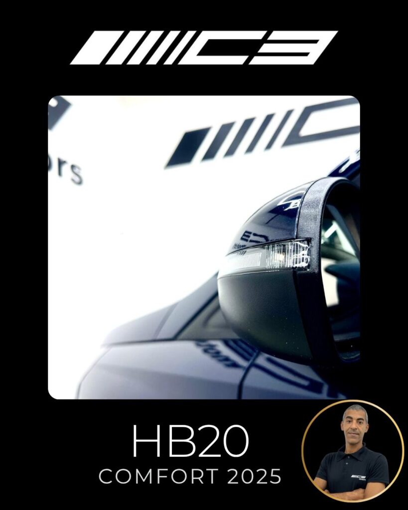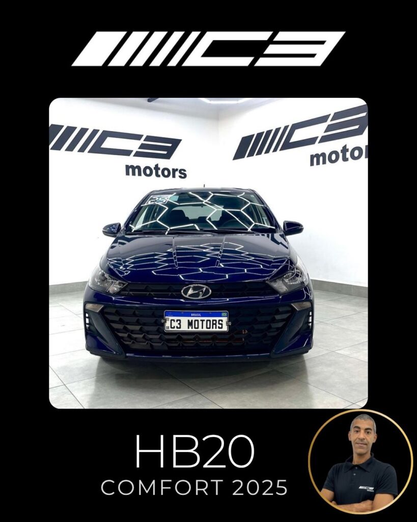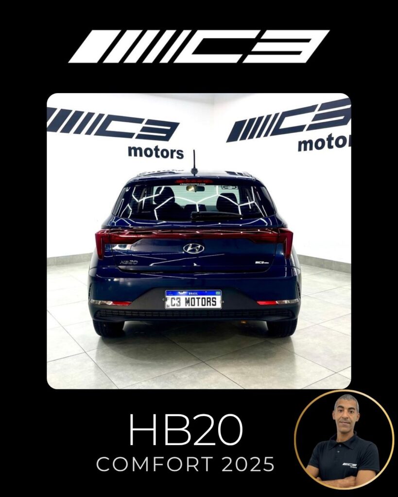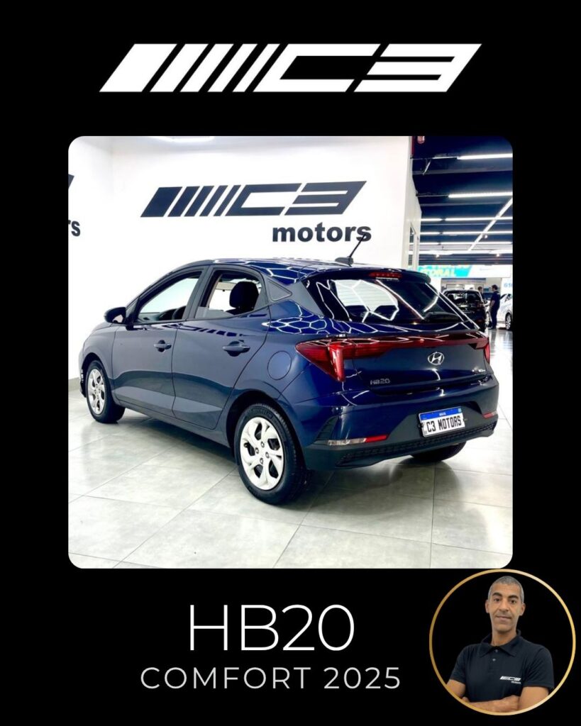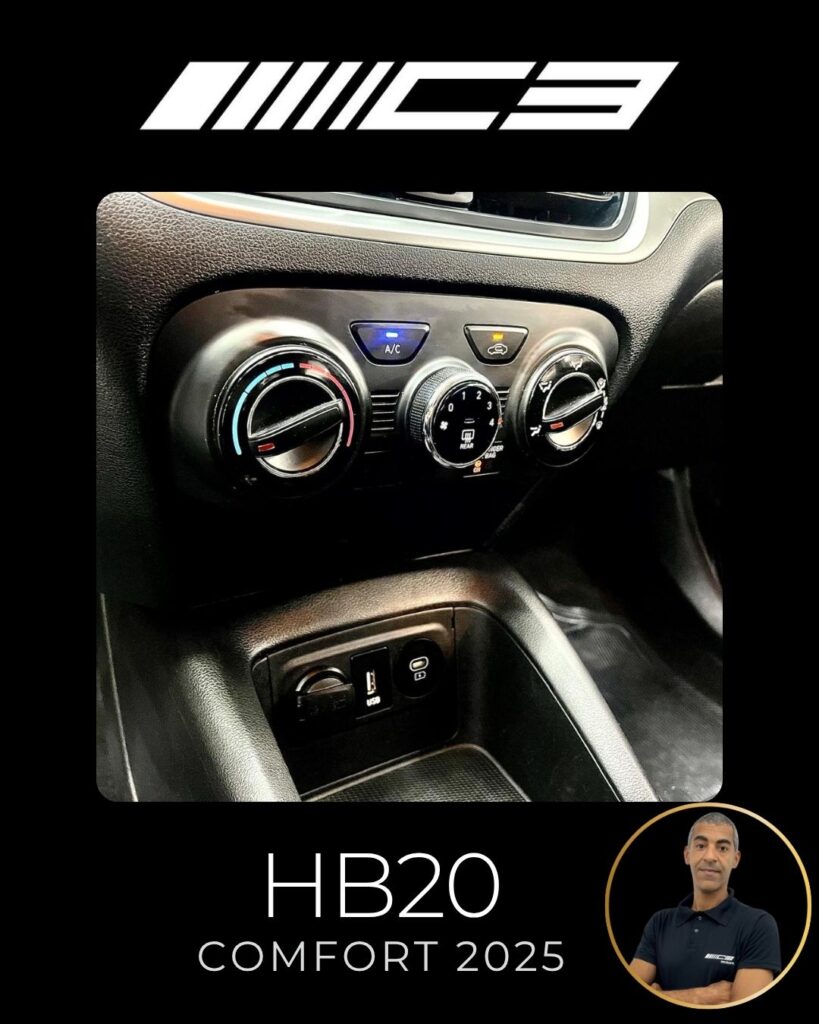 O Hyundai HB20 Hatch Comfort 2025 destaca-se pelo conjunto de conectividade e segurança, trazendo de série central multimídia de 8" com espelhamento sem fio (Apple CarPlay/Android Auto), câmera de ré, seis airbags, controle de tração/estabilidade, rodas de 15" e motor 1.0 Kappa com boa eficiência no trânsito urbano
