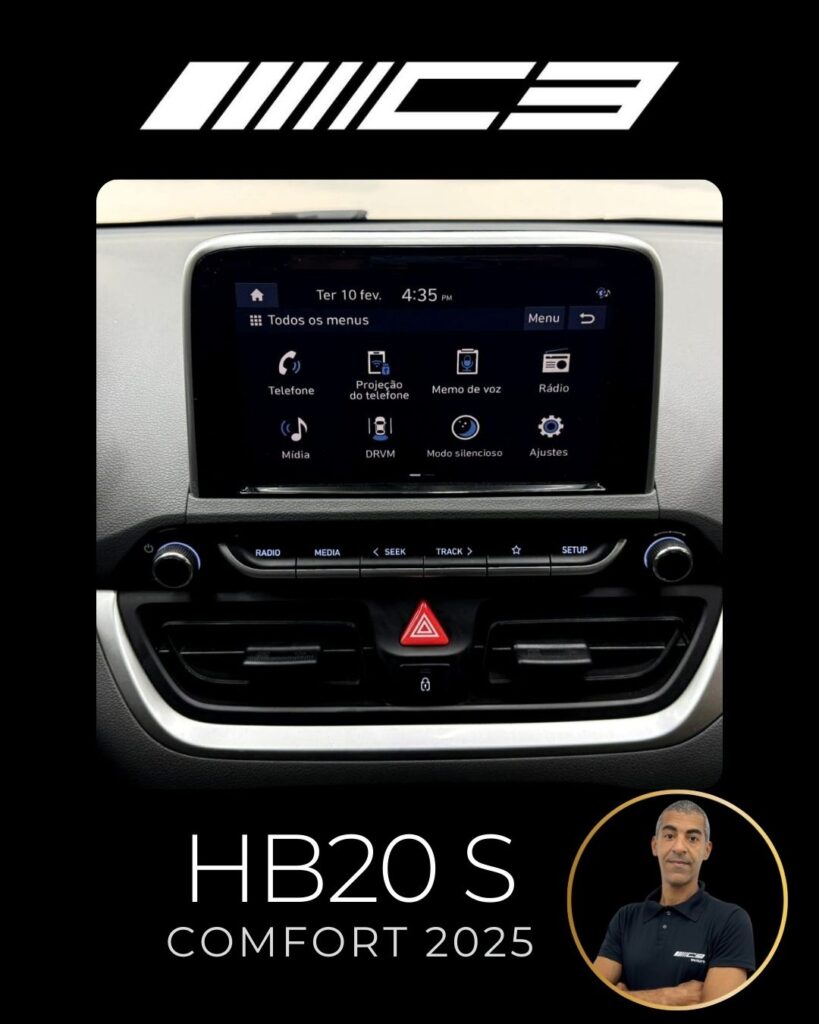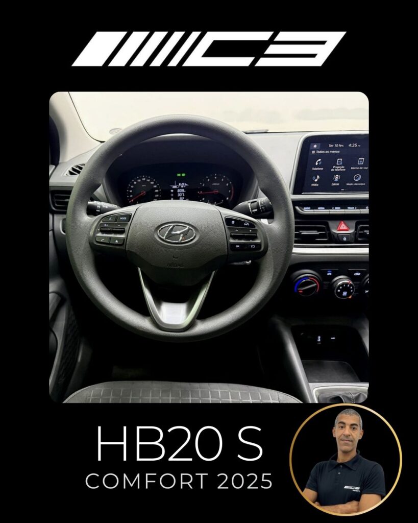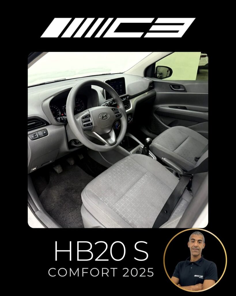 O Hyundai HB20S Comfort 2025 destaca-se como um sedan compacto bem equipado desde a entrada, oferecendo 6 airbags, controles de tração/estabilidade, assistente de rampa, central multimídia de 8" com espelhamento sem fio (Android Auto/Apple CarPlay), câmera de ré e um porta-malas de 475 litros, focando em segurança, tecnologia e amplo espaço