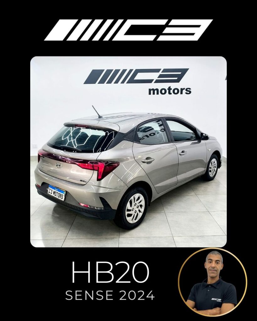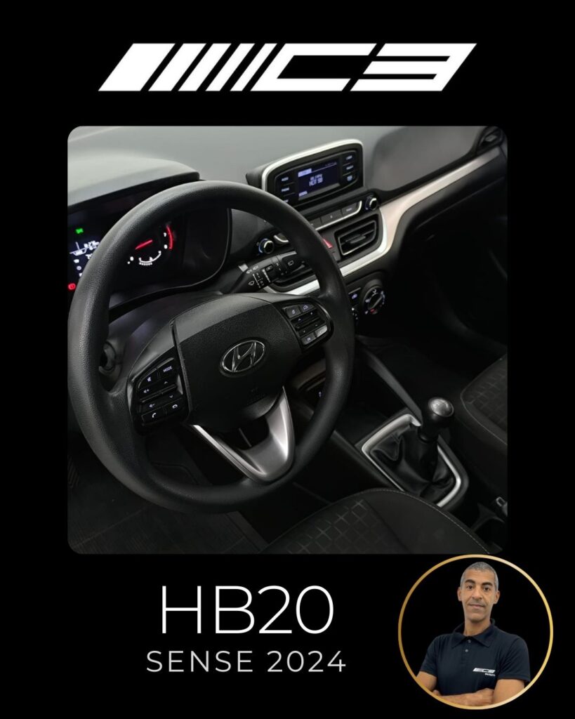 O Hyundai HB20 Sense 2024 destaca-se como a versão de entrada focada em custo-benefício e segurança, trazendo de série 6 airbags, controle de estabilidade (ESP), assistente de rampa e motor 1.0 aspirado de 80 cv (etanol). O modelo oferece direção elétrica progressiva, rádio com Bluetooth e um design atualizado