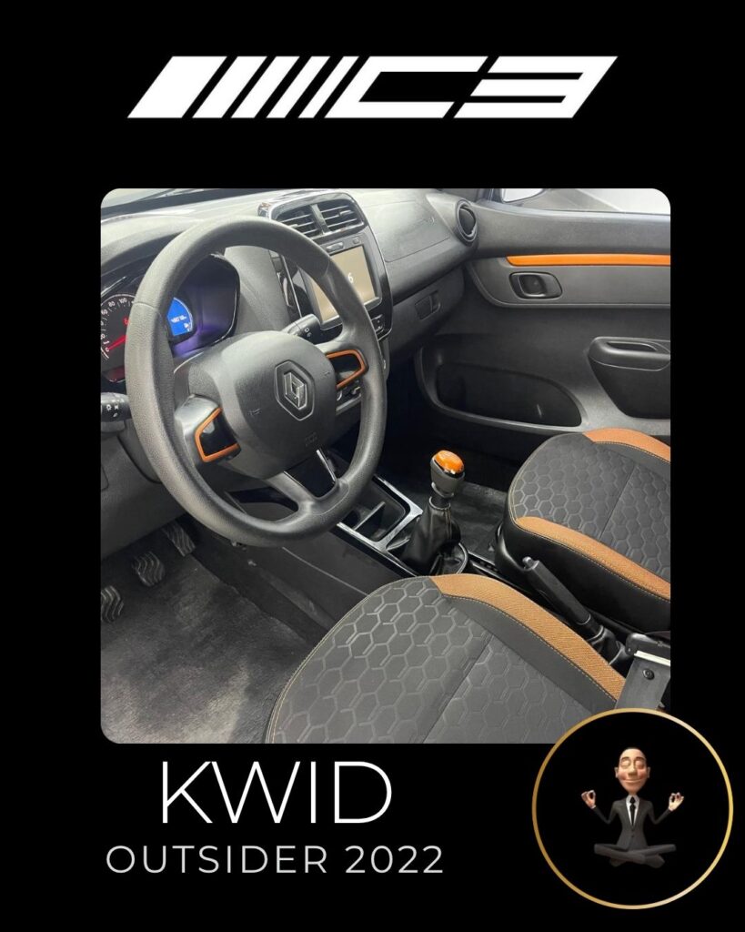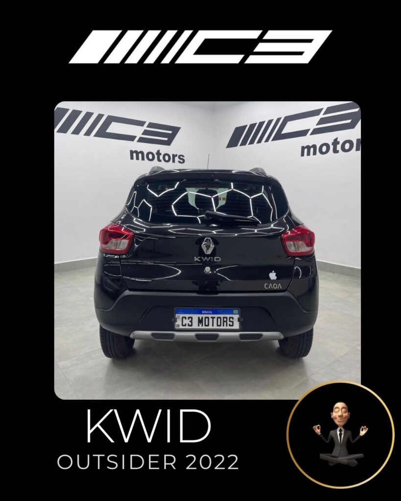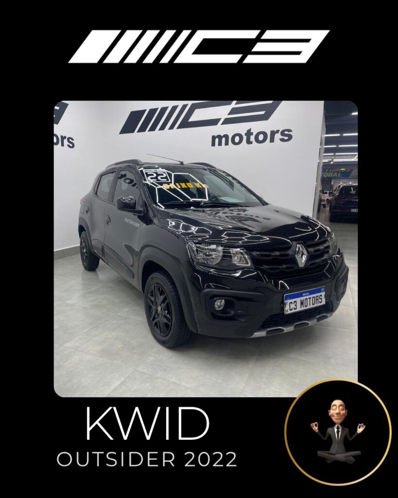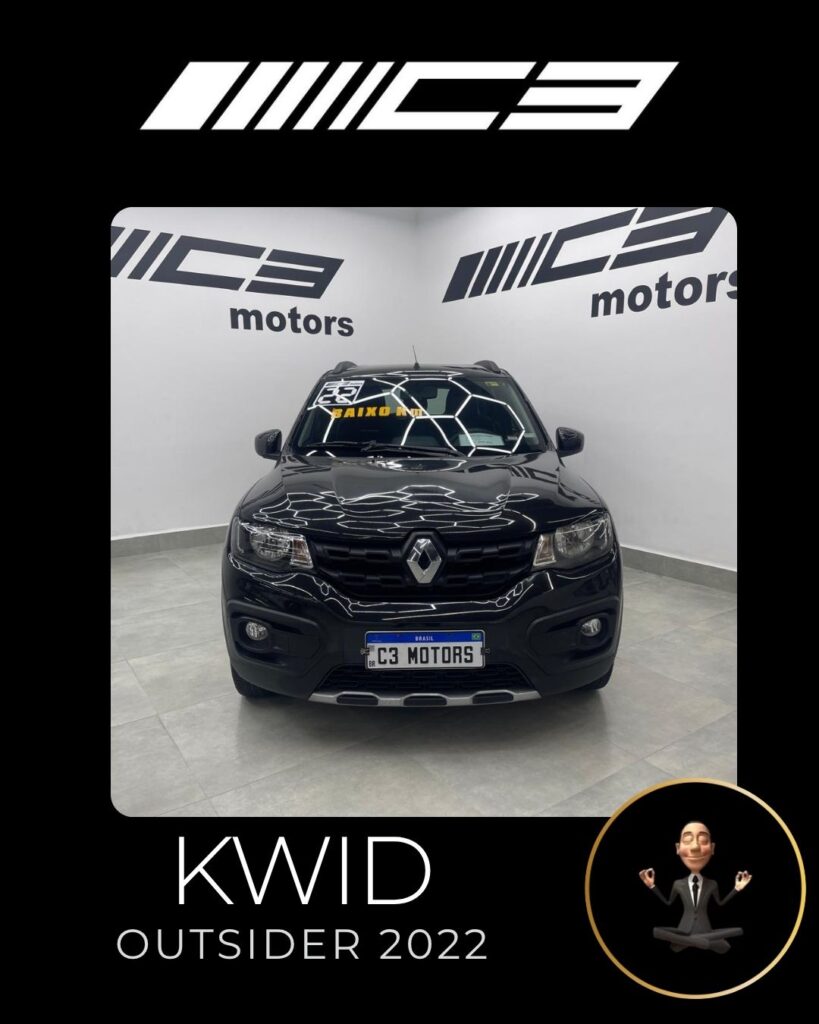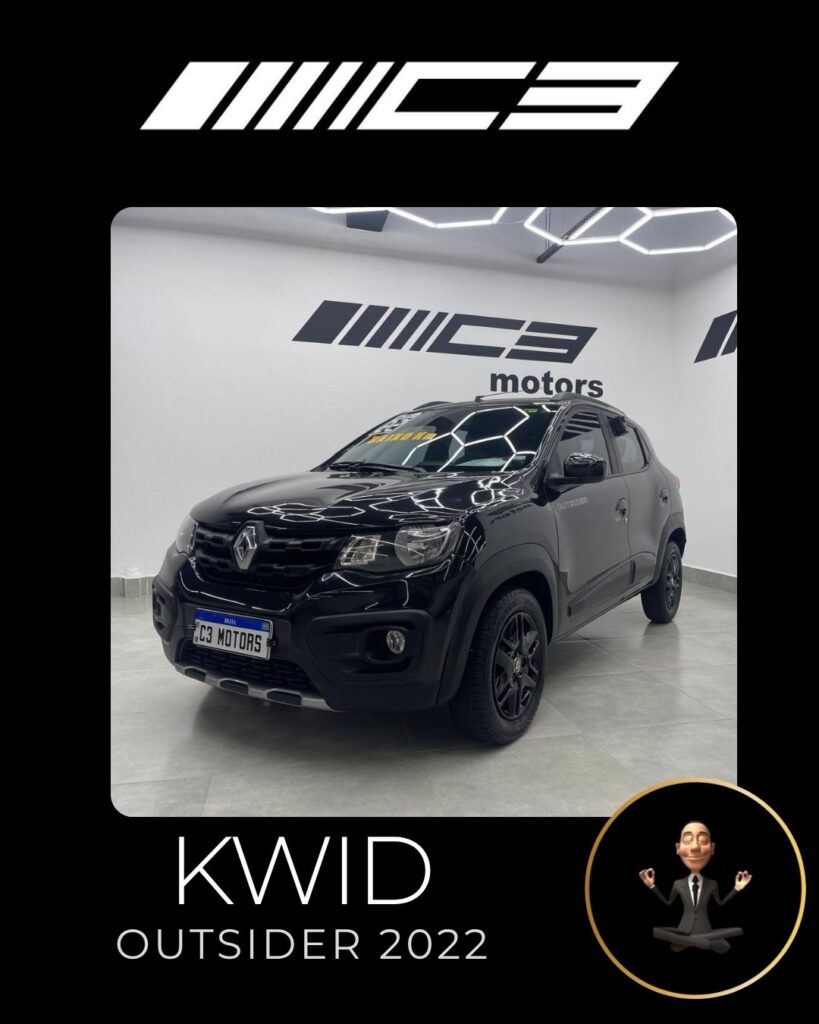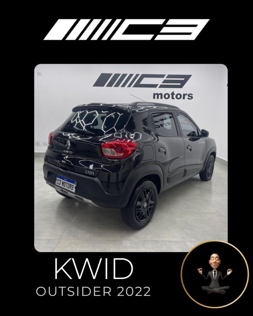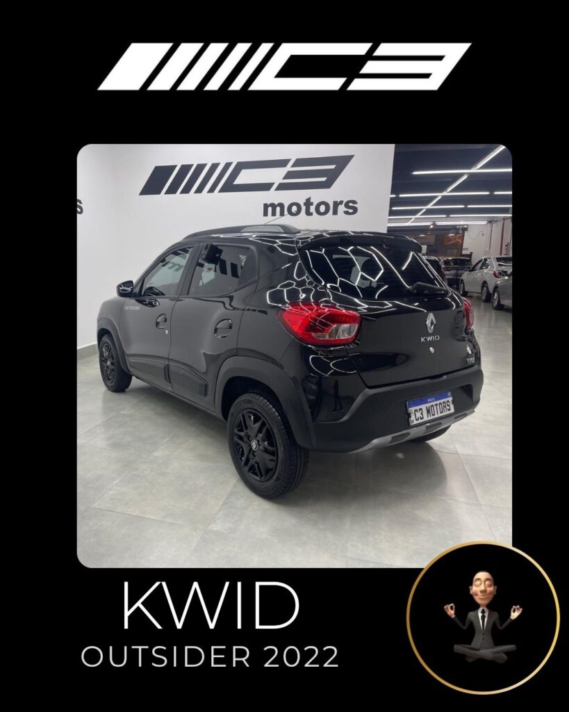 O Renault Kwid Outsider 2022 se destaca na linha por seu visual aventureiro e por itens de série exclusivos. Ele possui barras de teto, molduras de proteção lateral, skis frontais e traseiros, bancos exclusivos com detalhes em verde e rodas de liga leve diamantadas de 14 polegadas. Além disso, a versão Outsider inclui recursos como central multimídia com Android Auto e Apple CarPlay, câmera de ré, retrovisores elétricos, chave tipo canivete e outros detalhes de acabamento