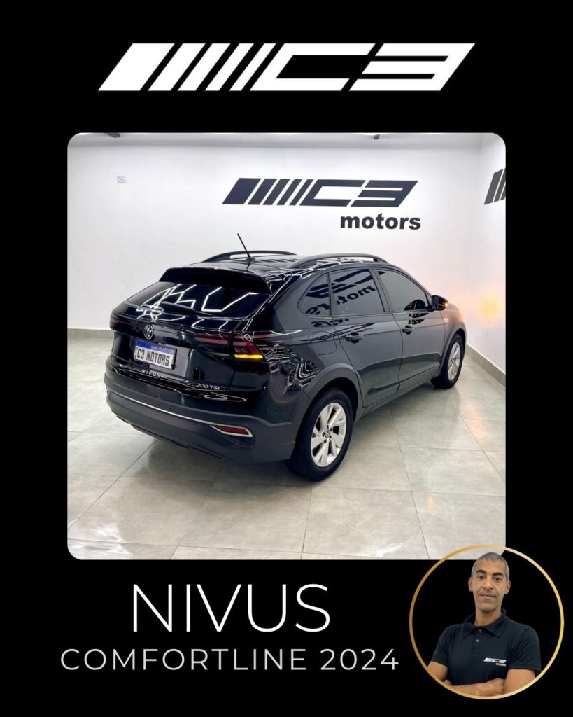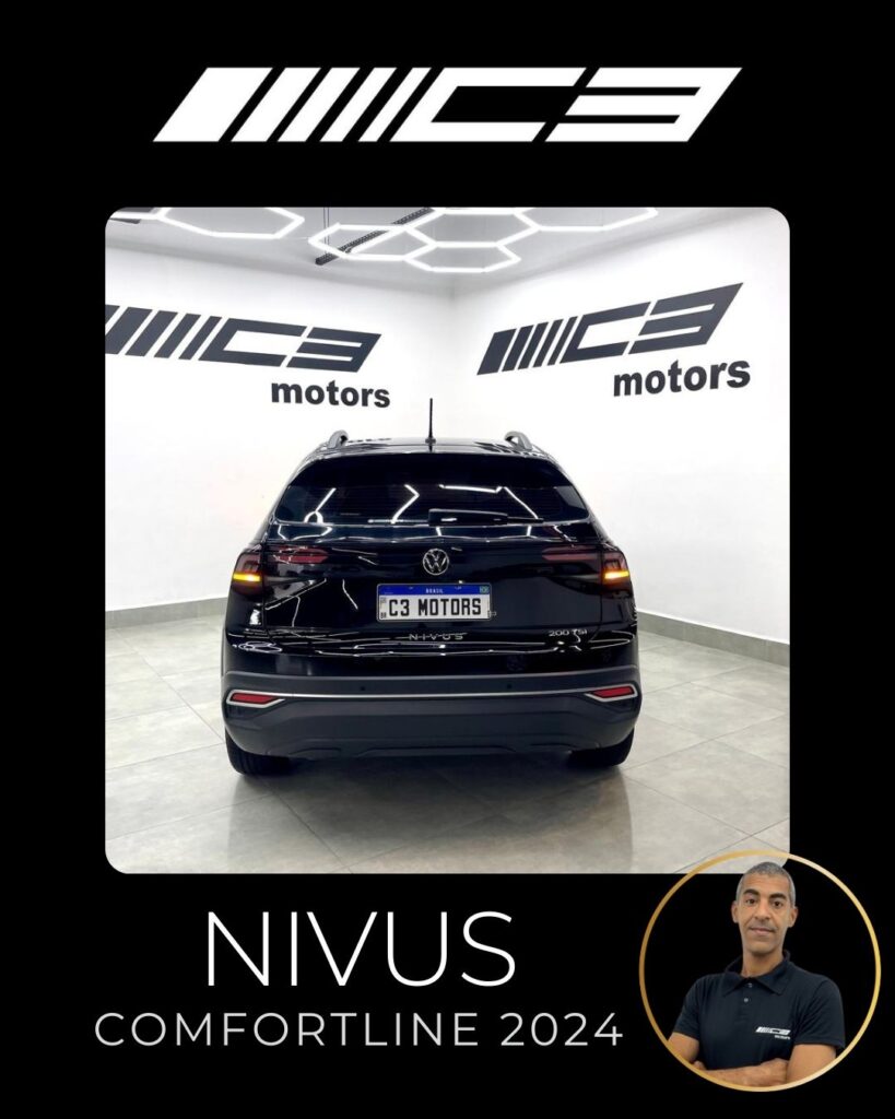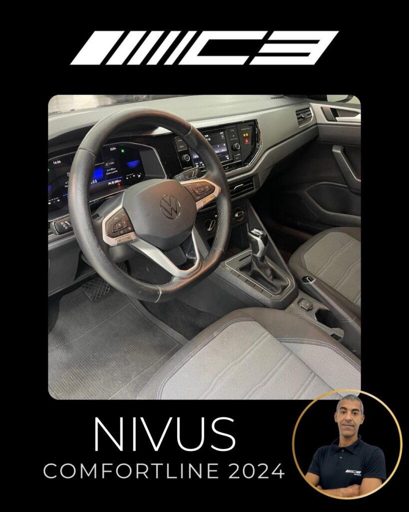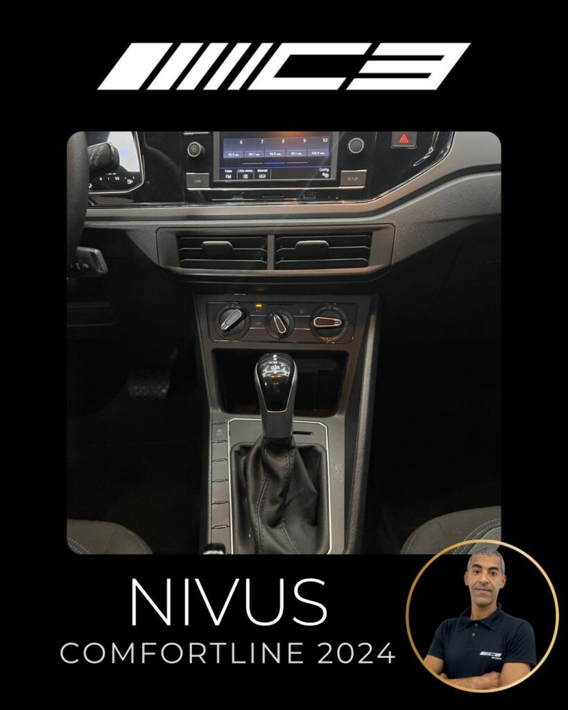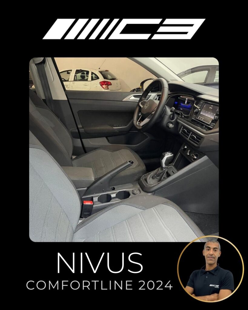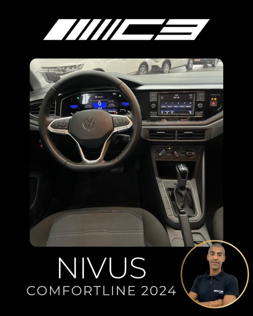 O Nivus Comfortline 2024 combina o motor 1.0 TSI turbo com câmbio automático de 6 marchas, oferecendo bom desempenho, e destaca-se pela segurança com 6 airbags e tecnologias como controle de estabilidade, frenagem autônoma de emergência e assistente de partida em rampa. Entre os diferenciais estão o piloto automático adaptativo, ar-condicionado digital, central multimídia VW Play com espelhamento de smartphones, sensor de estacionamento dianteiro e rebatimento elétrico dos retrovisores