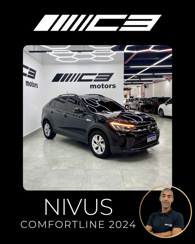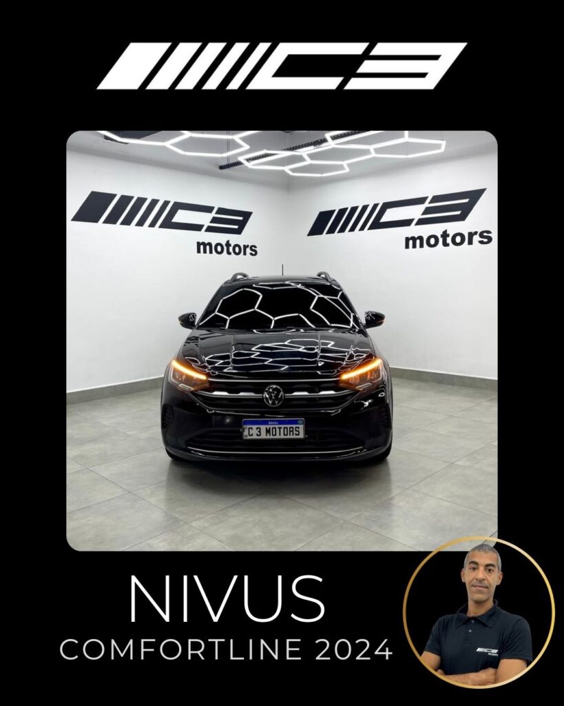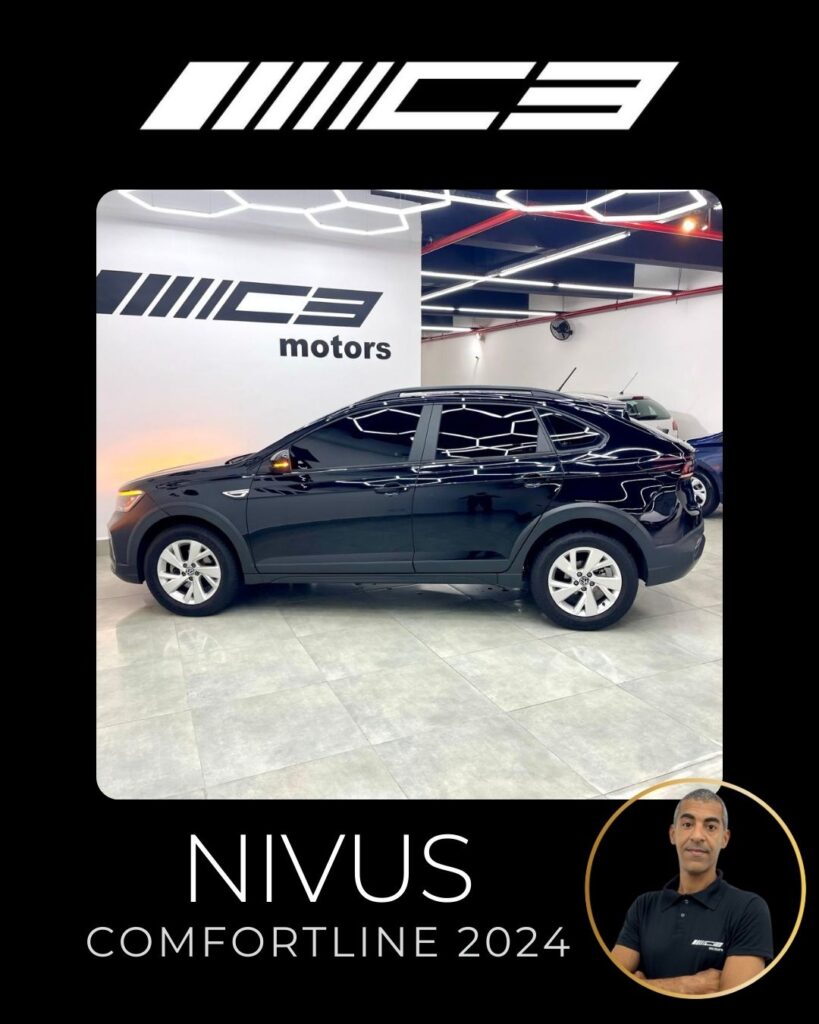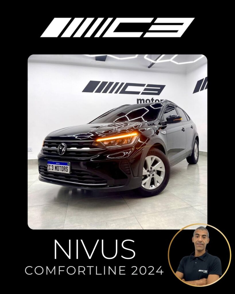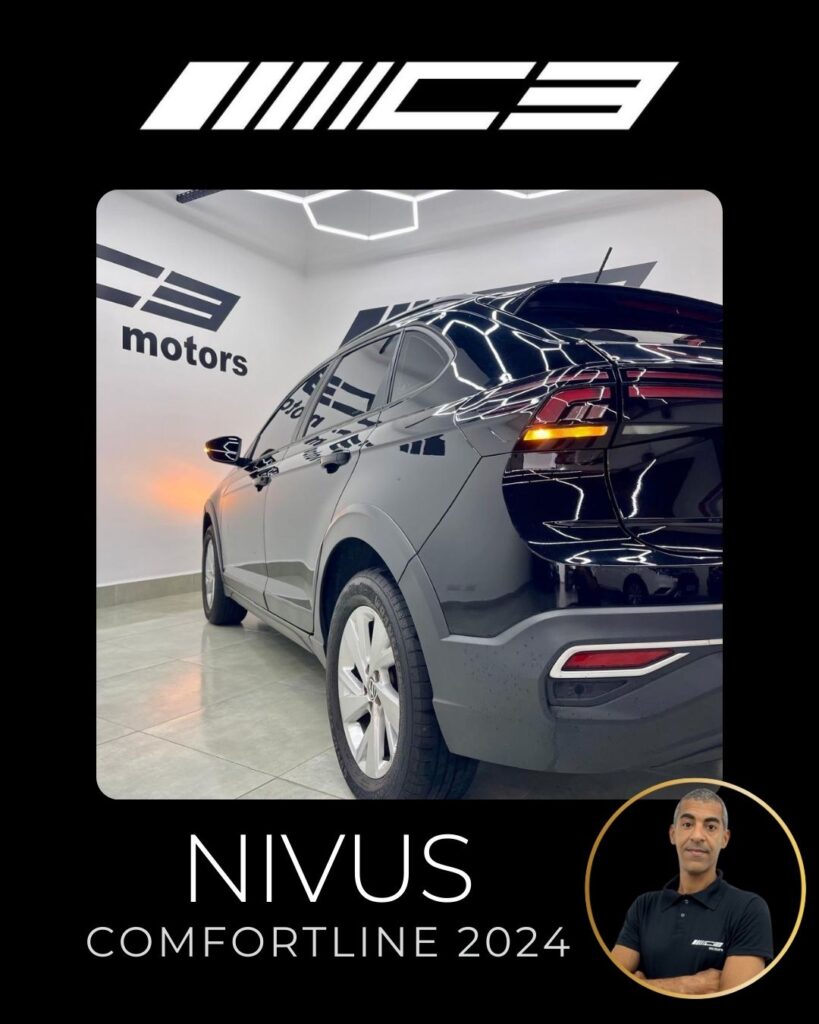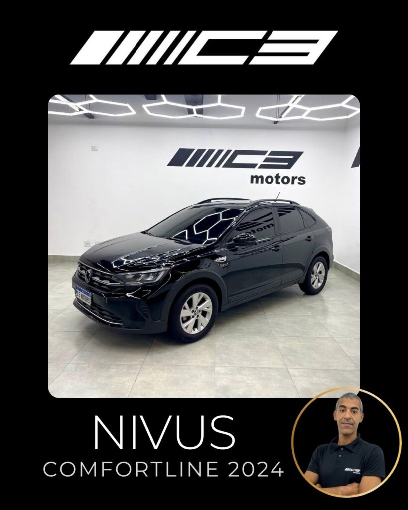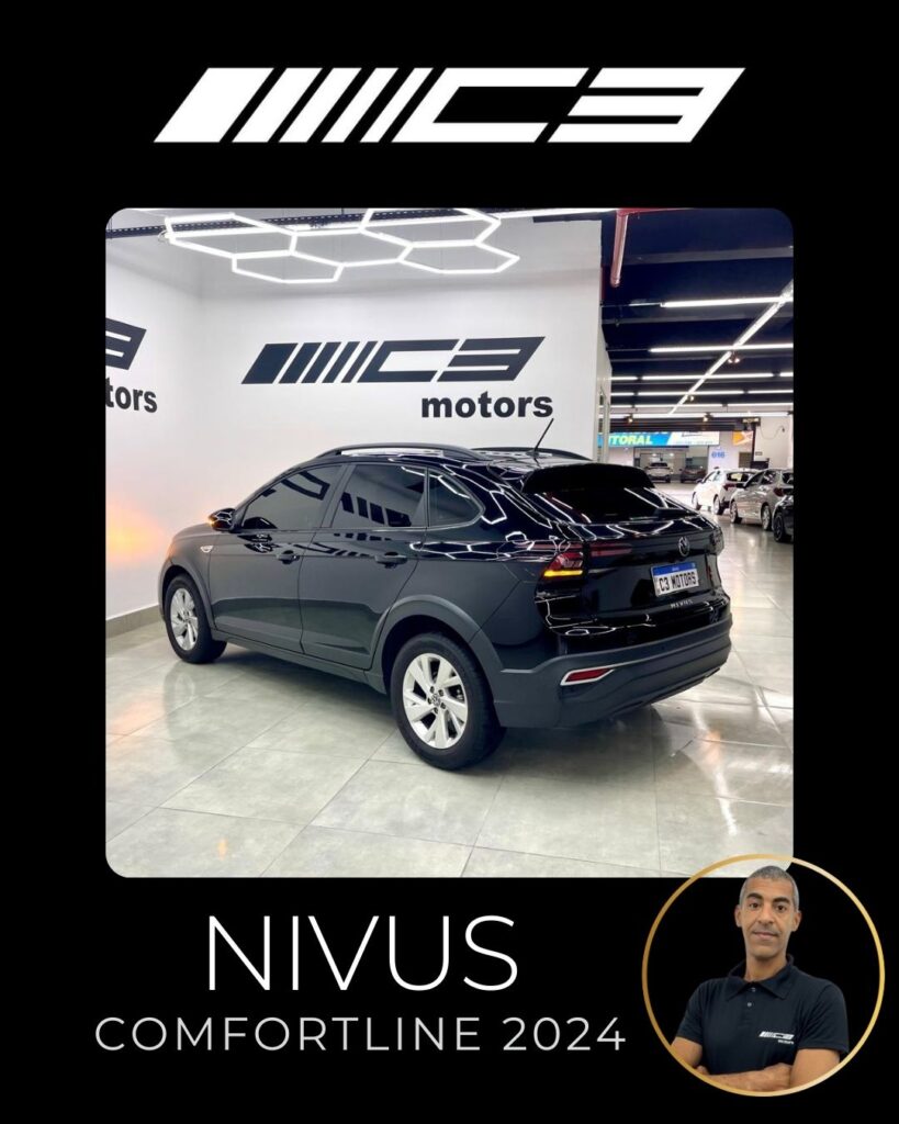 O Nivus Comfortline 2024 combina o motor 1.0 TSI turbo com câmbio automático de 6 marchas, oferecendo bom desempenho, e destaca-se pela segurança com 6 airbags e tecnologias como controle de estabilidade, frenagem autônoma de emergência e assistente de partida em rampa. Entre os diferenciais estão o piloto automático adaptativo, ar-condicionado digital, central multimídia VW Play com espelhamento de smartphones, sensor de estacionamento dianteiro e rebatimento elétrico dos retrovisores