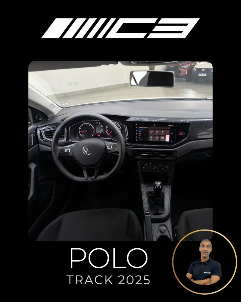 O Polo Track 2025 mantém seu foco em ser um hatch de entrada robusto e espaçoso, com diferenciais como motor 1.0 MPI, 4 airbags, direção elétrica, ar-condicionado, banco do motorista com ajuste de altura e volante multifuncional (opcional), e a opção de multimídia VW Play. As mudanças visuais são sutis, com detalhes em plástico preto na dianteira e rodas de ferro com calotas, contrastando com o Polo MPI, que tem faróis Full LED e mais itens de série, enquanto o Track aposta na economia e praticidade, mesmo com acabamento mais simples e ausência de alguns itens como sensor de estacionamento